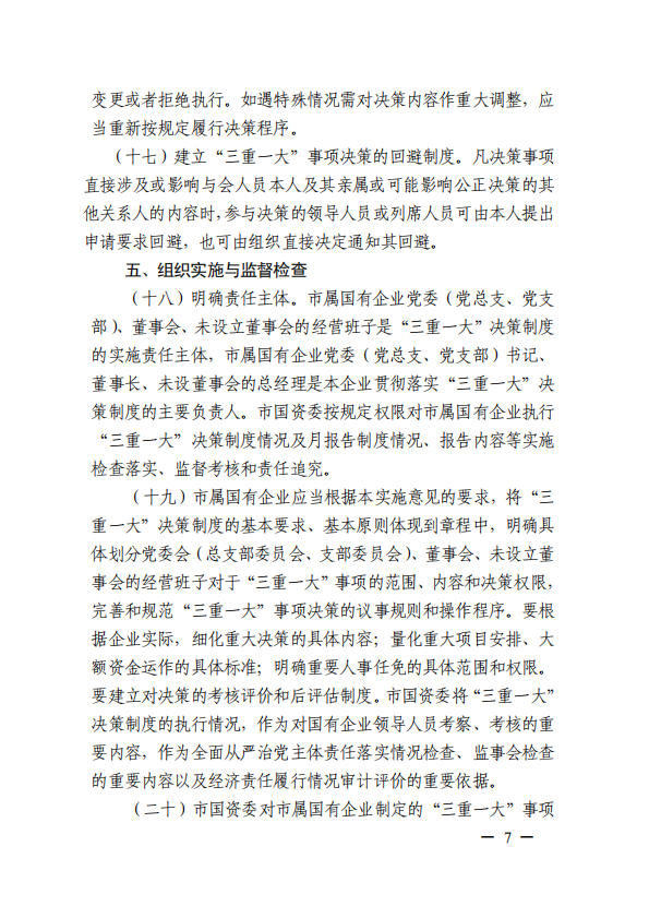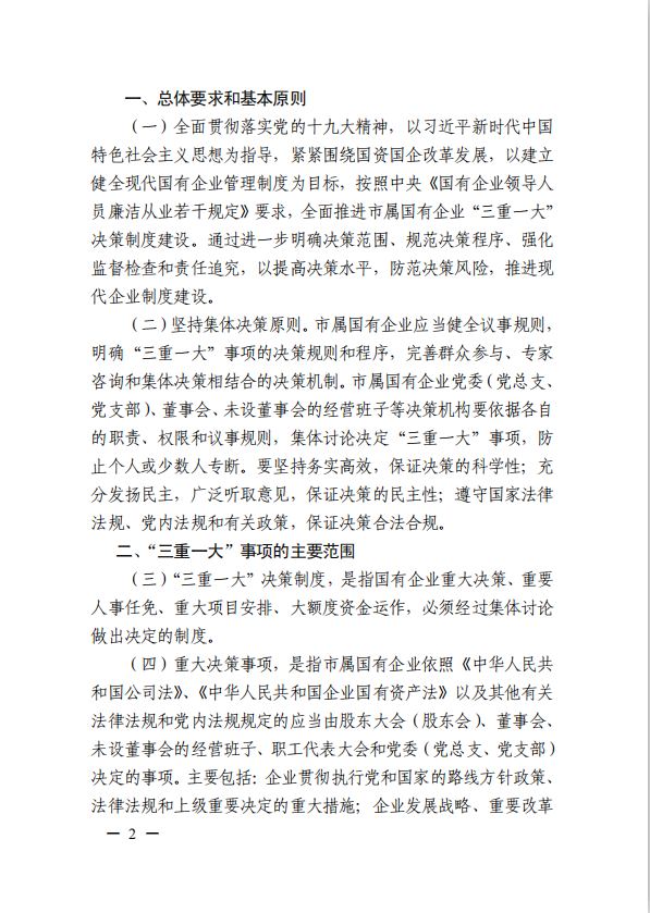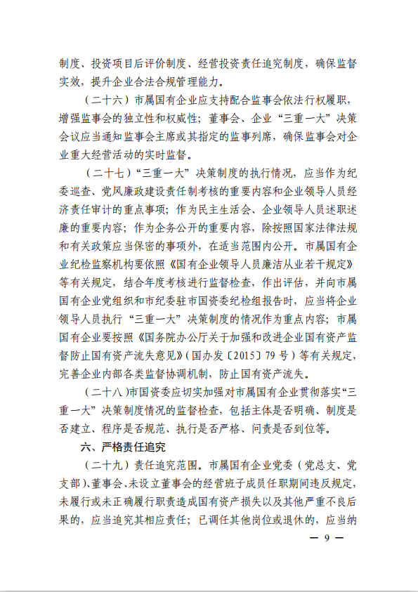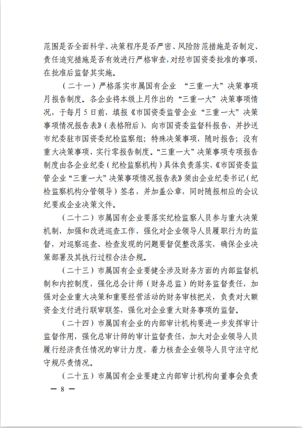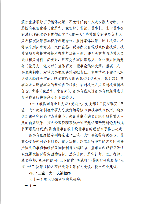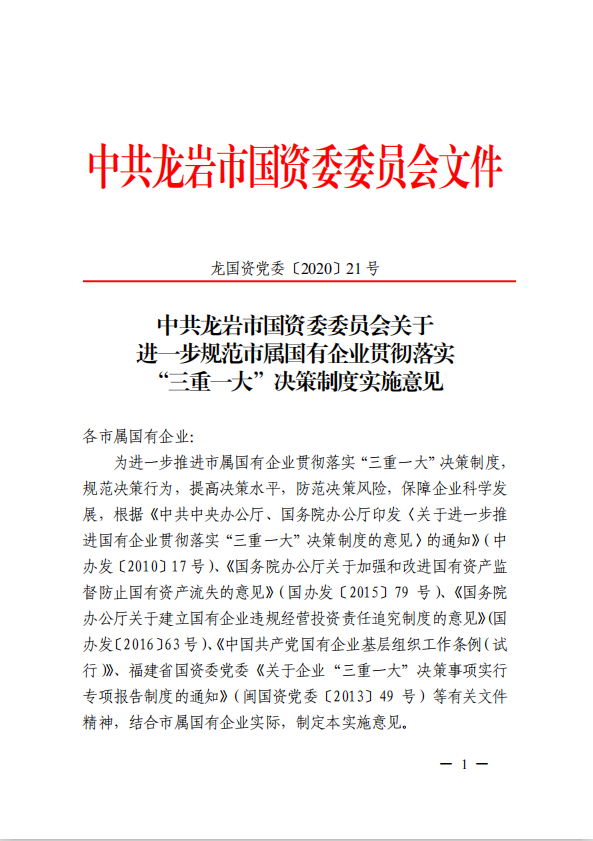 關(guān)于進(jìn)一步規(guī)范市屬國(guó)有企業(yè)貫徹落實(shí)“三重一大”決策制度實(shí)施意見(jiàn)(國(guó)資黨委[2020]21號(hào))