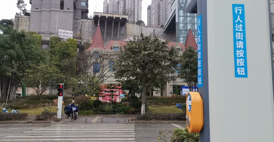 目前,在位于蓮莊南路恒大綠洲小區(qū)一、二期門口不遠處新增了人行橫道和信號燈,人行橫道兩側(cè)及路中分隔帶人行橫道處兩側(cè)各設(shè)置了一個桿件“請求式行人過街按鈕”。行人過街前按對應(yīng)的按鈕20秒后信號燈轉(zhuǎn)為黃燈,3秒后變紅燈,人行橫道轉(zhuǎn)為綠燈,行人根據(jù)信號燈指示可安全通過馬路,二次過街需重復(fù)進行請求式操作。同時,在該人行橫道處還設(shè)置了監(jiān)控系統(tǒng)和闖紅燈抓拍自動記錄系統(tǒng),防止車輛不按信號燈指示通行。