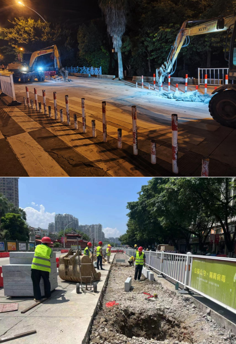 近日,中心城區(qū)南城街道小溪路口機(jī)器轟鳴,工人們破除路面、開挖路基、遷改管線等一片繁忙的施工景象。